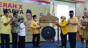 “Saya bertekad pada Pemilu 2024 mendatang, Partai Golkar bisa menang, bisa menang,” ucapnya disambut tepuh riuh kader Golkar.