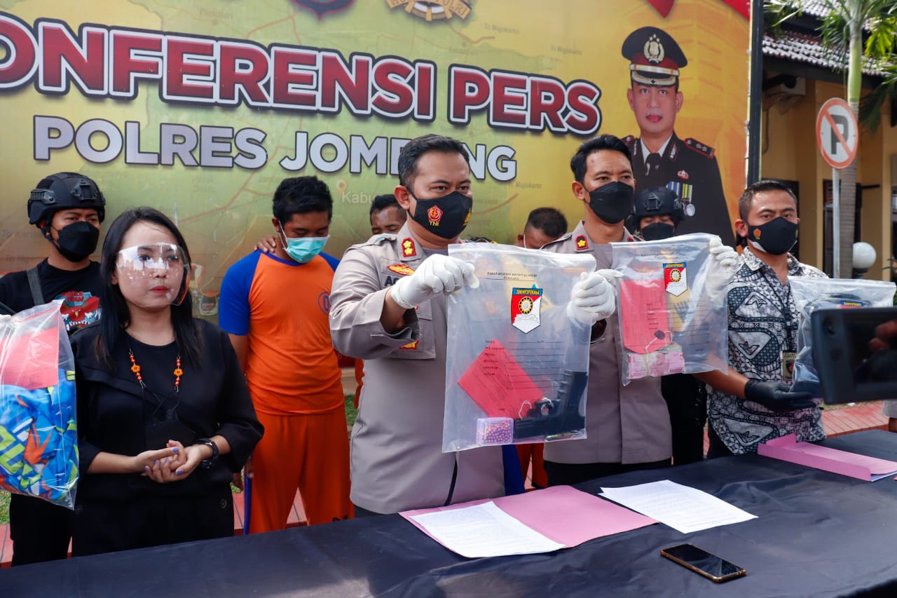 “Dua tersangka yang dilakukan tindakan tegas terukur oleh petugas yakni, samsul dan wanto karena melawan dan membahayakan petugas saat akan diamankan,” ujarnya saat konferensi pers di halaman Mapolres Jombang. Jum’at, (10/9/2021) siang.