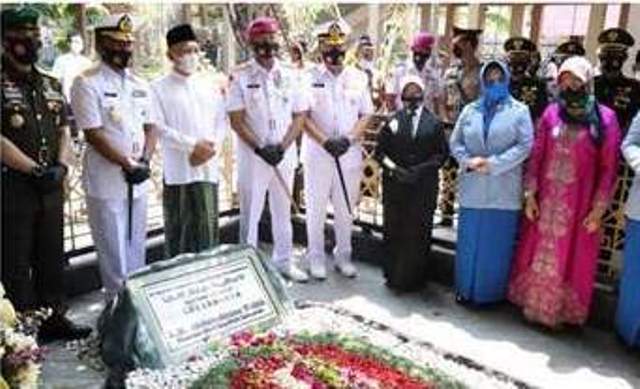 Bupati Jombang Hj Mundjidah Wahab bersama Forpimda mendampingi rombongan Dankodiklat AL, Laksamana Madya TNI Nurhidayat melakukan ziarah ke Makam Gus Dur di Ponpes Tebuireng, Diwek, Jombang, Senin, (4/10/2021).