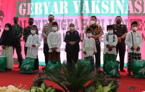 Selain itu, di sela-sela pelaksanaan vaksinasi, Bupati Jombang bersama jajaran Forkopimda Jombang yang mendampingi, juga menyerahkan santunan secara simbolis kepada anak yatim piatu, sebagaimana disiarkan Humas Dinas Kominfo Kabupaten Jombang. (dan)