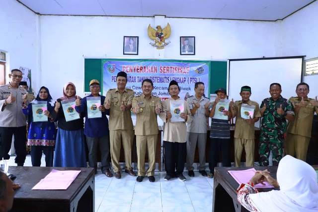 Wakil Bupati Jombang Sumrambah dalam sambutannya berharap dengan telah dimilikinya sertipikat bukti kepemilikan hak atas tanah yang sah dan kuat secara hukum sehingga diharapkan tidak lagi sengketa atas kepemilikan tanah.