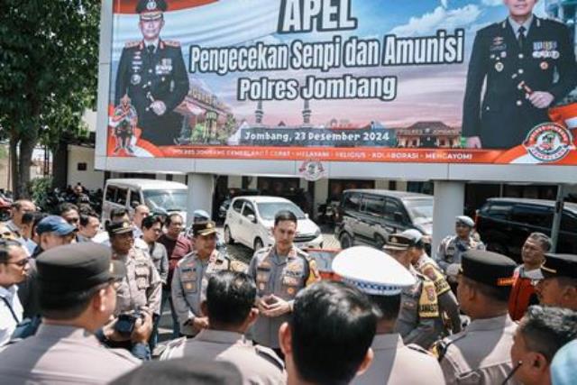 Jombang, layang.co – Dalam rangka mengantisipasi penyalahgunaan senjata api, Polres Jombang melakukan pemeriksaan senjata api (senpi) beserta amunisi milik anggota Polres Jombang di lapangan Mapolres Jombang, (Senin(23/12/2024).