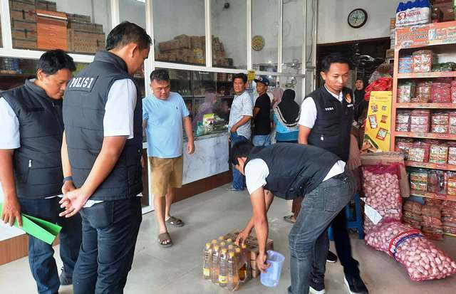 Selain itu, petugas juga melakukan pengecekan ketahanan stok kebutuhan pokok, khususnya minyak goreng.