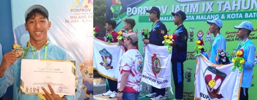 Photo kiri: Anggy Tjipto Wening peraih medali perak dari nomor lomba selam bifin 50 meter putra, sedangkan photo kanan, atlet cabor Pickleball meraih medali perunggu dari ajeng Porprov Jatim IX tahun 2025.