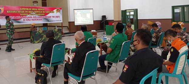 Jombang, layang.co – Kodim 0814/Jombang hari Jum’at (14/8) pagi menggelar Komunikasi i Sosial dengan Keluarga Besar TNI (KBT) Tri Bulan III tahun 2020 dengan makna kegiatan untuk mengajak dan menumbuhkan partisipasi sosial dalam upaya penegakan disiplin patuh protokol Covid-19.