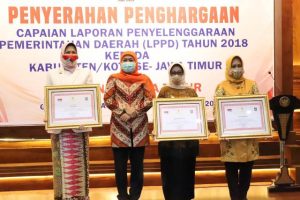 Sore ini Jumat, 16/10/2020 di Gedung Grahadi Surabaya, Piagam Penghargaan LPPD diserahkan oleh Gubernur Jawa Timur Khofifah Indar Parawansa kepada Bupati Jombang Hj Mundjidah Wahab.