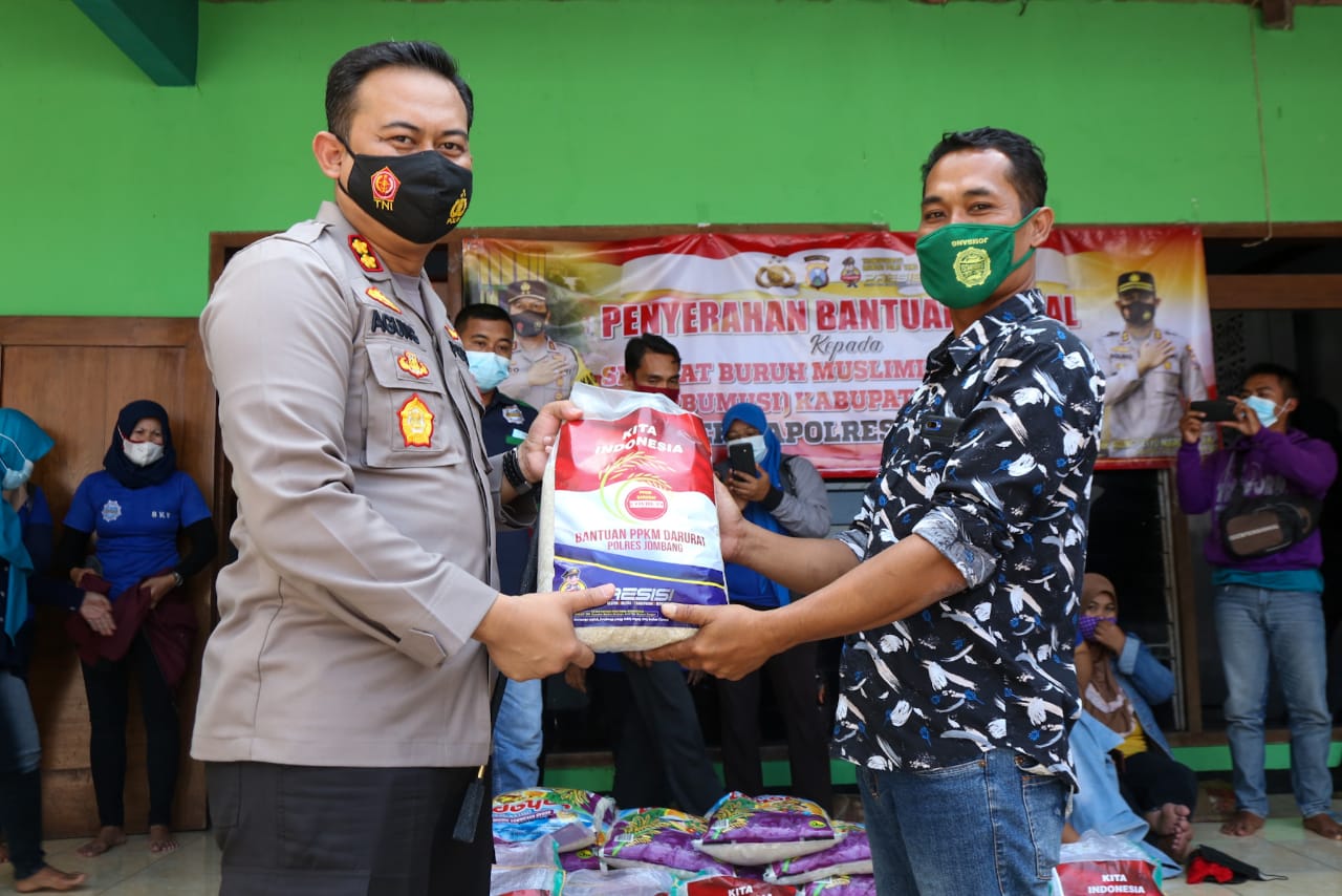 Kapolres Jombang Salurkan Ratusan paket Sembako Kepada Buruh dan Pekerja Seni Tradisional
