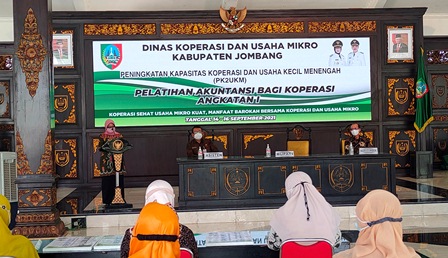 Jombang, layang.co – Ditengah pandemi Covid-19 yang kasusnya mulai menurun, Pemerintah Kabupaten Jombang melalui Dinas Koperasi dan Usaha Mikro dengan tetap melaksanakan protokol kesehatan pencegahan Covid-19 menggelar kegiatan Peningkatan Kapasitas Koperasi dan Usaha Kecil Menengah (PK2UKM), Pelatihan Akuntansi bagi koperasi, di Pendopo Pemkab Jombang, Selasa (14/9/2021).