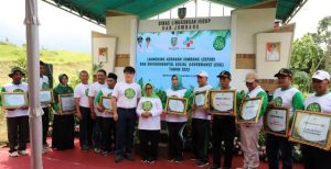 Dalam kegiatan tersebut, Bupati juga menyerahkan bibit tanaman dan pemberian penghargaan kepada Kader Konservasi dan Kelompok Tani Hutan terbaik, Sekolah Adiwiyata Nasional dan Kabupaten, serta penghargaan kampung beriman.