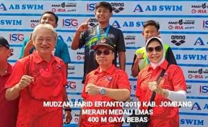 Disampaikan oleh Ketua Umum PRSI Kabupaten Jombang Drs Anang Masruchin, M.Si, sebagian hasil perlombaan Jum’at pagi, tercatat Mudzaki Farid Ertanto (2010) atlet putra Kabupaten Jombang menyabet medali emas nomor gaya bebas 400 meter putra.