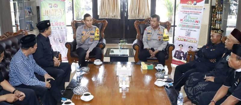 Kapolres Jombang AKBP Eko Bagus Riyadi, Wakapolres Kompol Hari Kurniawan dan Kasatintelkam AKP Budi Santosa berdialog dengan Ketua Perguruan Pencak Silat di Kabupaten Jombang.
