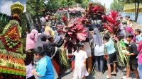 Di tengah antusiasme masyarakat, hasil bumi yang dibawa juga dibagikan kemasyarakat yang menyaksikan dengan tetap tertib mendekati garis finish di Jl. Kusuma Bangsa.